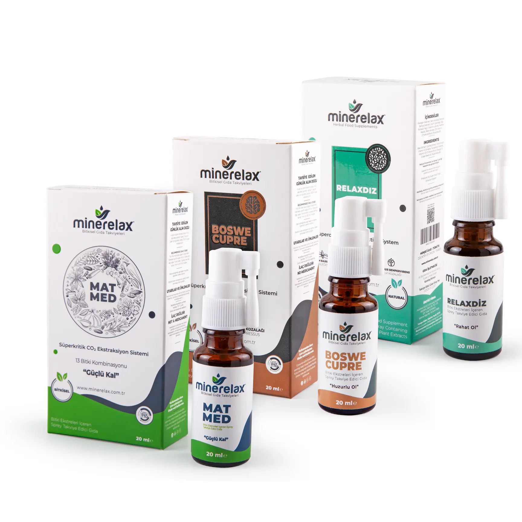 Matmed ve Boswe Cupre 1 bardak suya 1 sprey olacak şekilde Günde 2 kez (Sabah - Akşam) kullanılması önerilir. RelaxDiz 1 bardak suya 2 sprey olacak şekilde Öğlen 1 kez kullanılması önerilir.
